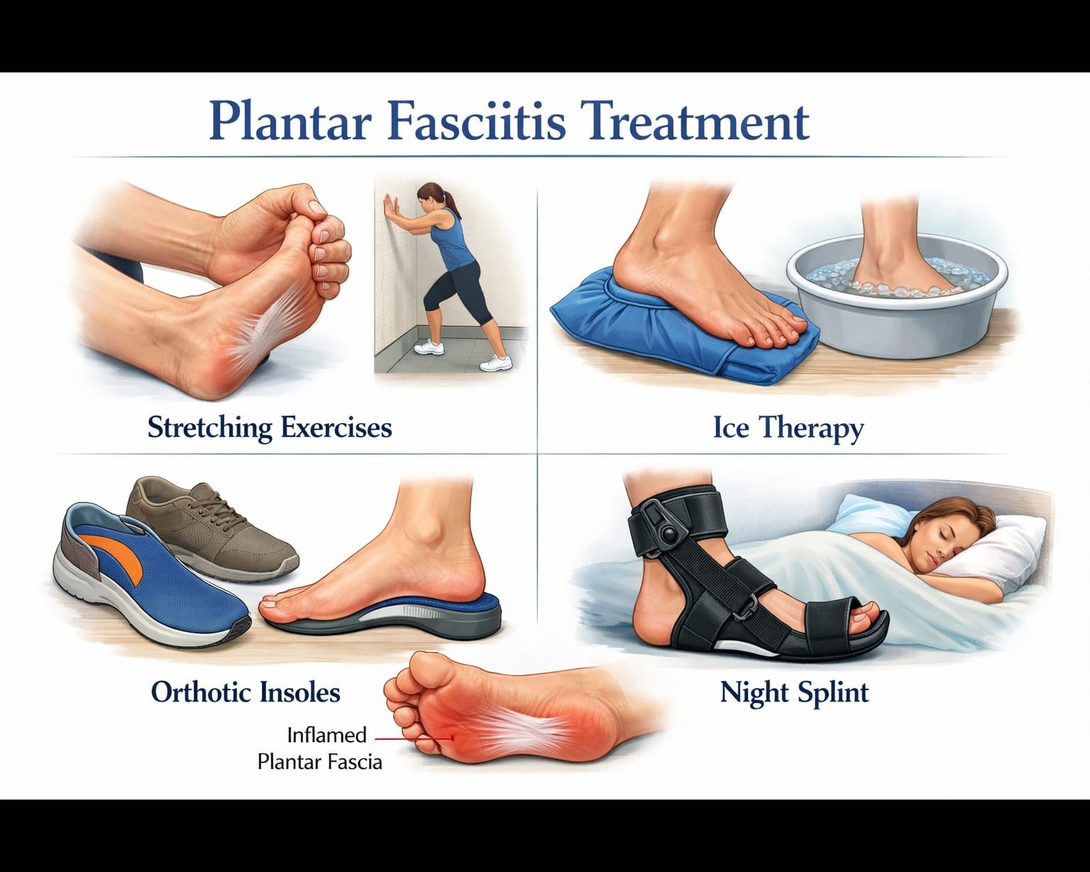 Plantar fasciitis is a common condition where you feel pain in the heel or bottom of the foot. It happens when the plantar fascia (a thick band of tissue that connects your heel to your toes and supports your foot arch) becomes irritated or inflamed. This pain is usually worse in the morning when you take your first steps, or after long periods of sitting or standing. It can also increase after walking running or wearing improper footwear. People who stand a lot are overweight have flat feet or high arches or use worn-out shoes are more likely to get this problem. The treatment of plantar fasciitis mainly focuses on reducing pain and improving flexibility. In the beginning rest is important and you should avoid long standing or walking. Applying ice on the heel for 10–15 minutes can help reduce pain and swelling. Stretching exercises for the calf muscles and plantar fascia are very important as tight muscles increase stress on the heel. Simple exercises like rolling a ball or bottle under the foot can give relief. Wearing proper cushioned shoes or using heel pads/arch supports also helps to reduce pressure. At Physionautics clinic treatment includes pain-relief modalities such as ultrasound therapy IFT or dry needling if required. Soft tissue release and myofascial techniques are used to reduce tightness. The therapist will guide you through specific stretching and strengthening exercises to improve foot mechanics and prevent recurrence. Taping techniques may also be used to support the arch. The main goal is to reduce pain improve flexibility and help you return to normal walking without discomfort.