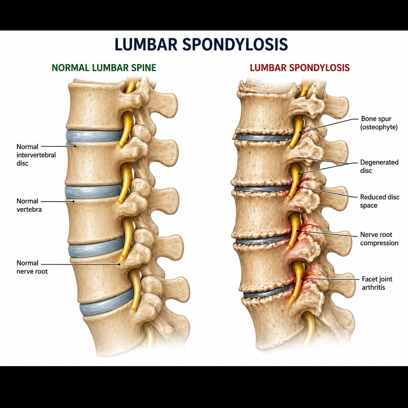 Lumbar Spondylosis is a common condition that affects the lower part of the spine. It mainly happens due to aging and wear and tear of the spine over time. In this condition the discs between the bones of the spin start losing their water content and become less flexible. Because of this the space between the bones reduces and sometimes small bony growths called osteophytes can form. These changes can lead to stiffness pain and reduced movement in the lower back. People with lumbar spondylosis usually feel dull or aching pain in the lower back especially after sitting for a long time bending or lifting heavy objects. The pain may sometimes spread to the hips or legs if nearby nerves get irritated. Morning stiffness is also very common and movement may feel difficult initially but improves slightly with activity. Poor posture lack of exercise obesity and repetitive strain can increase the risk of this condition. In PhysioNautics, the main goal is to reduce pain improve flexibility and strengthen the muscles supporting the spine. Treatment includes heat therapy ultrasound and gentle manual therapy to relax tight muscles. Exercises like stretching core strengthening and posture correction play a very important role in long-term relief. Patients are also advised to avoid prolonged sitting maintain proper posture and stay active. With regular physiotherapy and lifestyle changes most people can manage lumbar spondylosis effectively and continue their daily activities without much difficulty.